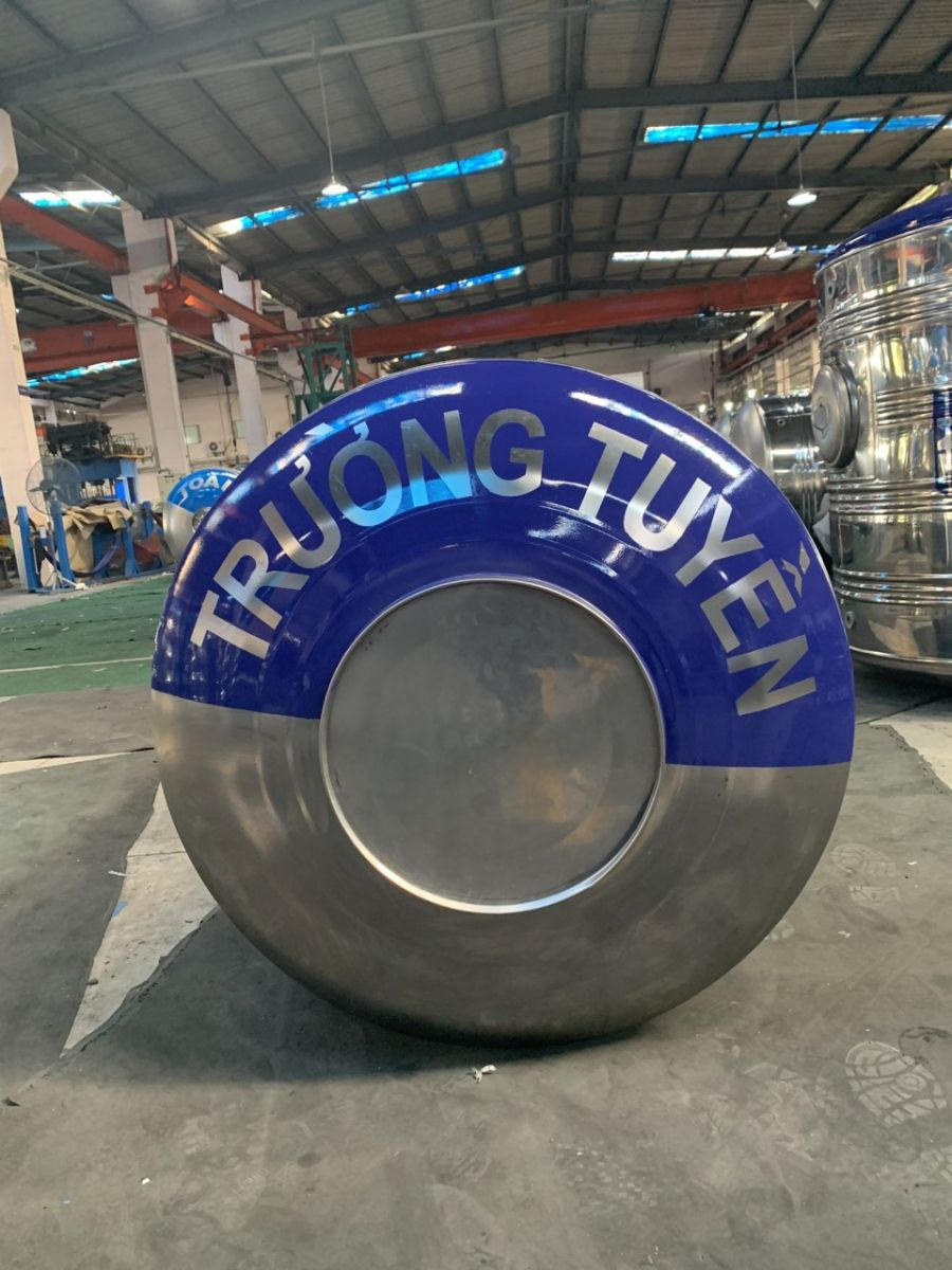 Nhận diện logo Trường Tuyền mới mềm mại, đẹp hiện đại, sơn trực tiếp trên thân bồn và dập nổi tại đầu, đáy bồn, nắp bịt, được thiết kế để hạn chế hàng giả, hàng nhái.